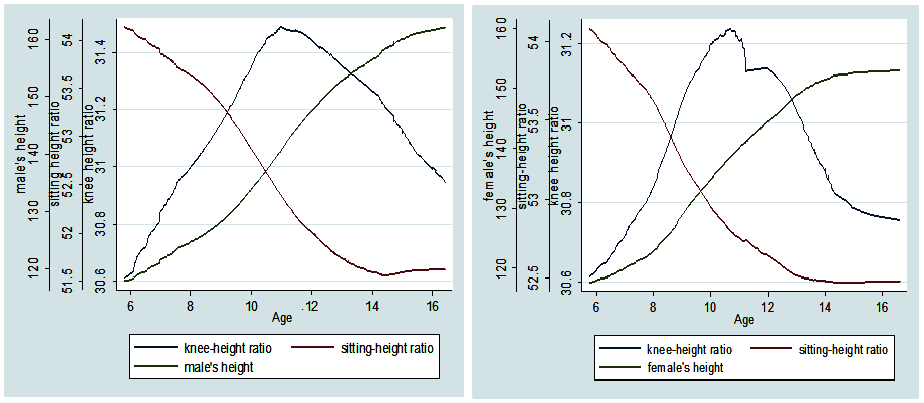 Figure 3 Annang Giri Moelyo presented knee height and knee height ratios among school children in Surakarta, Indonesia, and analyzed increment of height, knee height and sitting height, and growth patterns of knee height ratio and height.